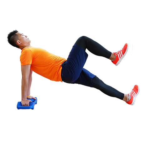 繃緊核心肌群臀部往上抬,使膝蓋至肩膀形成一直線