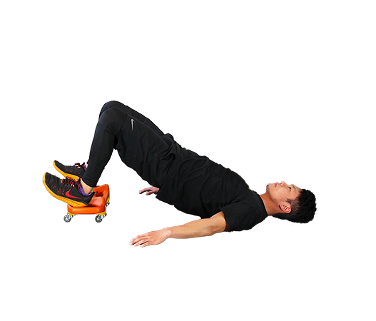 雙腳沿著地面往身體方向滑,同時將臀部往上抬。使膝蓋至肩膀形成一直線。